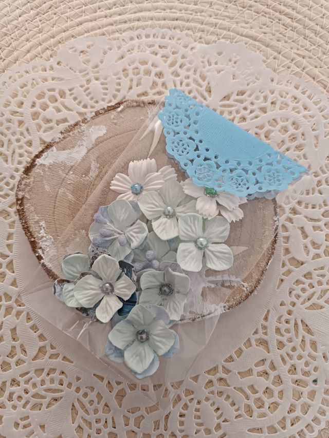 Lot de 15 pièces. Très jolies fleurs et feuilles faites main. Le coeur est agrémenté de perles en verre, brillants, paillettes...La taille des fleurs : les plus grandes ont environ 2.5 cm de diamètre, aux plus petites 3 cm.