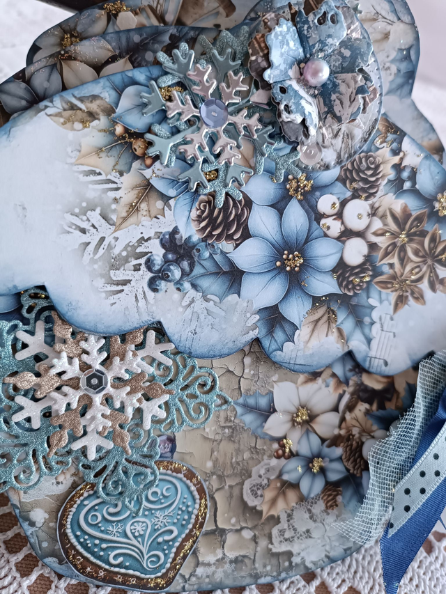 L'hiver approche à grands pas et voici un album photos contenant des emplacements photos toujours chic dans une forme de cupecake et aux motifs de biscuits, oiseaux, pingouins, fleurs et flocons de noël. Le tout mesure environ 15 X 15 X 5 cm. Il est relié par un anneau métal que vous pouvez ouvrir si vous voulez ajouter des pages. Des rubans, perles et breloque orne le tout. La structure des pages et toute en mdf (carton bois). Seulement 1 Album à la vente. Objet unique. Retrouvez la vidéo de présentation sur la chaine youtube scrapmerveilleux, le lien à copier est ici : https://youtu.be/NuJ_Zb2aZPI