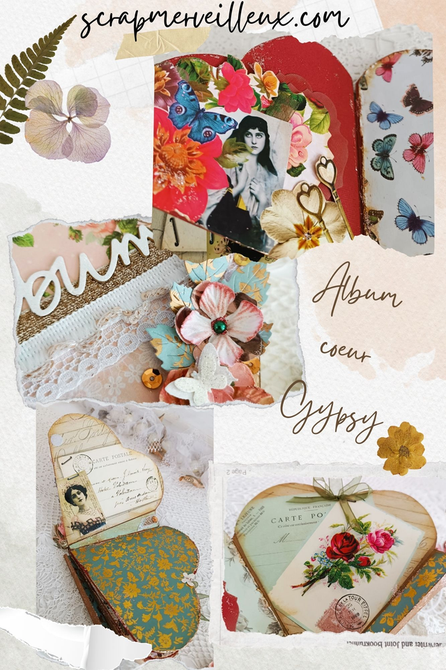 Kit + tuto album photos en forme de coeur, à suspendre ou à poser : tout pour réaliser cet album qui pourra convenir pour diverses occasions. Le tutoriel est en 1 vidéo + un gabarit est imprimé en papier dans votre kit. Papiers de la célèbre marque Anglaise, chic Craft Consortium Ltd. Les fleurs sont faites à la main, les découpes sont comprises hormis les cadres. Retrouvez les fleurs en plus sur la boutique si vous voulez en acheter d'autres que celles fournies dans le kit. Sa taille est d'environ 16 x 20 cm. Et bien sûr un tuto en vidéo pour vous lancer ! Attention il n'y a que 7 kits à la vente ! Vous pouvez voir la présentation du kit en détails sur ma chaine youtube "scrapmerveilleux" intitulé de la vidéo : "présentation kit album coeur gypsy" lien : https://youtu.be/3ARLJ3LznpM