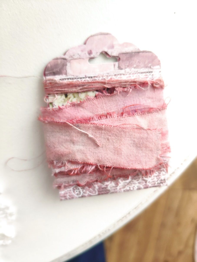 Ruban shabby + fil, coton tienté mains, largeur environ 2 cm sur 1 mètre de long. couleur rose barbe à papa. De beaux effets de couleurs, idéal pour les junks ou albums, carterie...